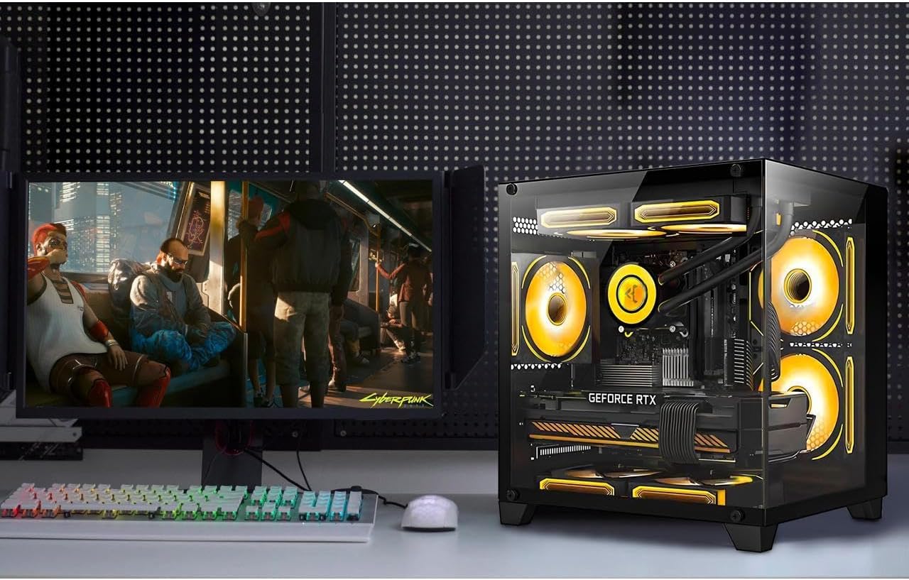Panorama Gaming PC Desktop - AMD Ryzen 5 5600GT 3.6GHz, RTX 4060 8GB, 16GB DDR4 RAM 3200, 1TB M.2 PCIE SSD, 240mm AIO, 11AC Wi-Fi, Windows 11 Pro 64-bit Desktop Computer, Black