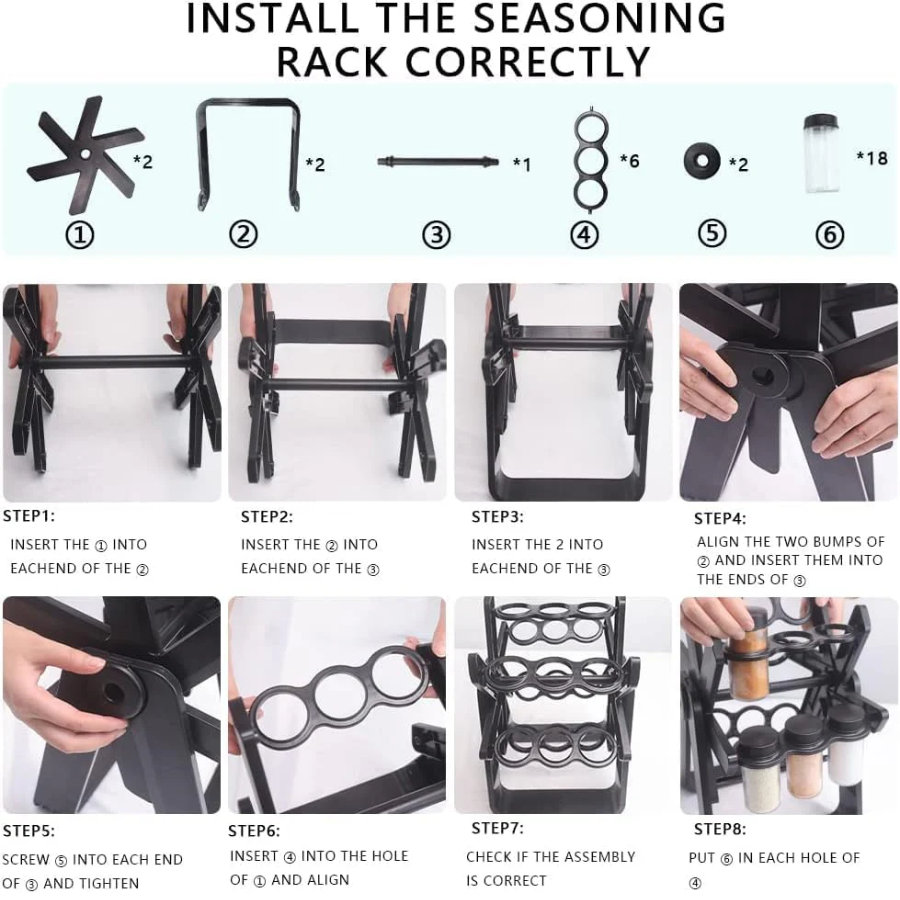 Premium Spice Rack Organizer with 18 Glass Bottles: Our spices rack organizer or seasoning rack organizer holds 18 glass spice jars and is made of high quality glass. The spice rack and jars or rotating spice storage rack is made of heavy duty ABS, which is rust-proof, more durable and stable. Rotates well and looks great.